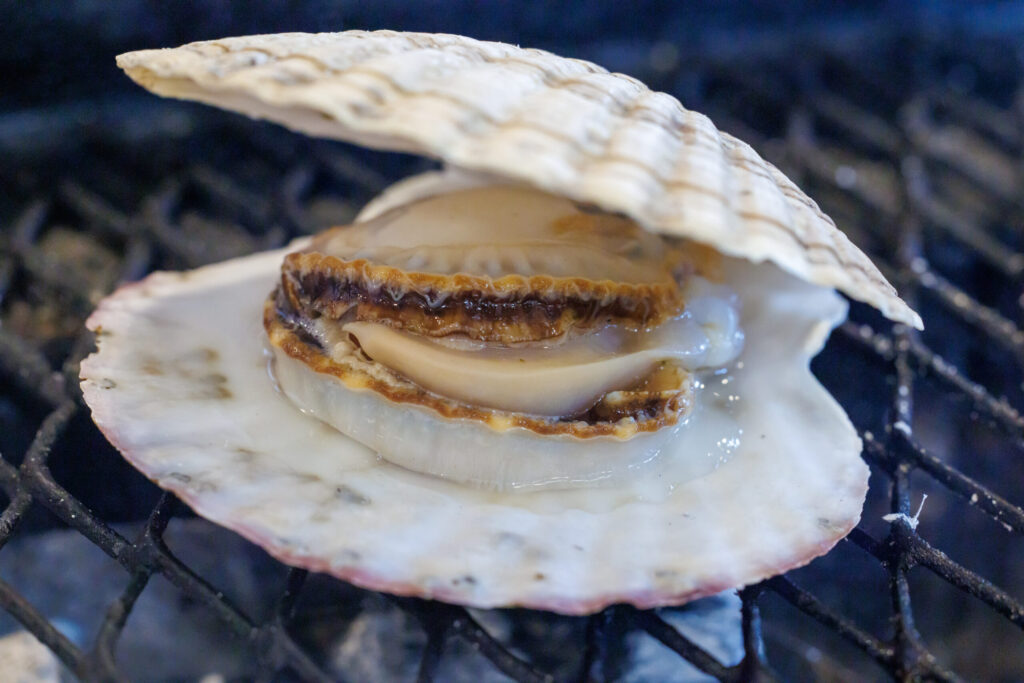 - Grilled scallops in shell – A signature Hokkaido style. Whole scallops are grilled over charcoal or a gas flame in their shells with butter and soy sauce until the juices bubble.