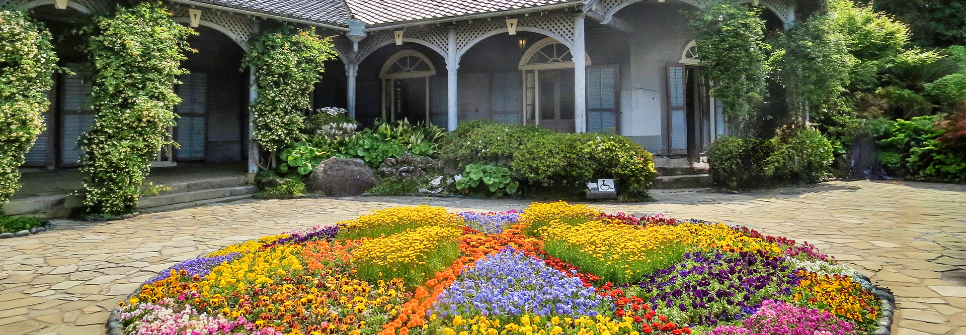 The centerpiece of the garden is the former residence of Thomas Blake Glover, considered the oldest surviving wooden Western-style house in Japan. The structure blends Western design with Japanese craftsmanship: