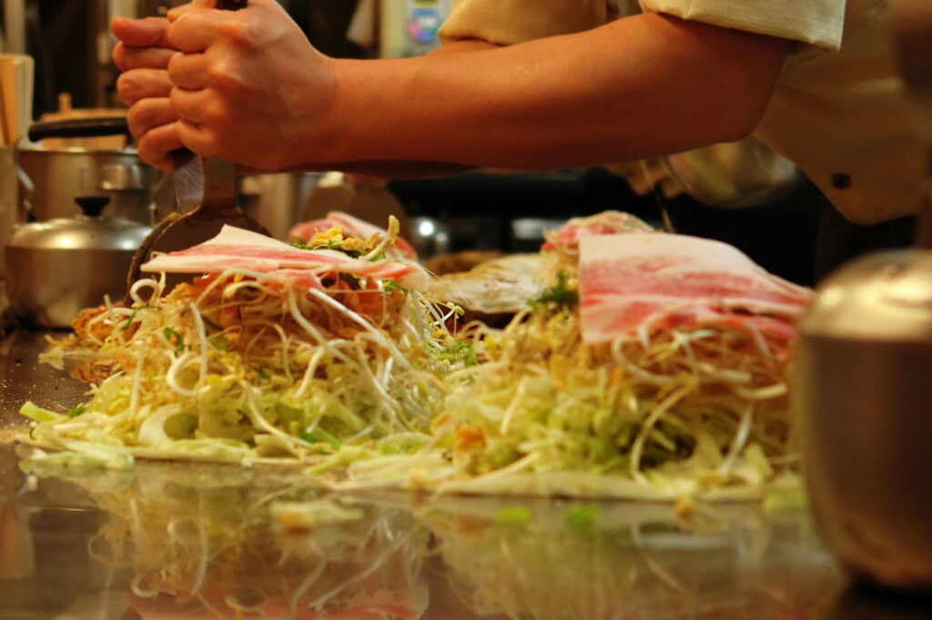 In Osaka, cabbage, batter, meat, and other fillings are mixed together in a bowl and cooked like a thick pancake. In Hiroshima, the chef pours a very thin layer of batter first, then builds ingredients in layers: batter, cabbage, sprouts, meat, noodles, egg. This method creates distinct textures – crisp edges, soft cabbage, chewy noodles – in each bite.