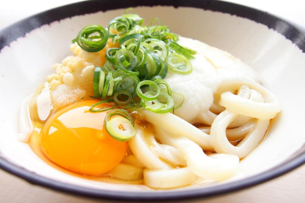 • Kama-tama udon: Freshly boiled noodles topped with a raw egg and soy-based sauce, stirred together at the table.
