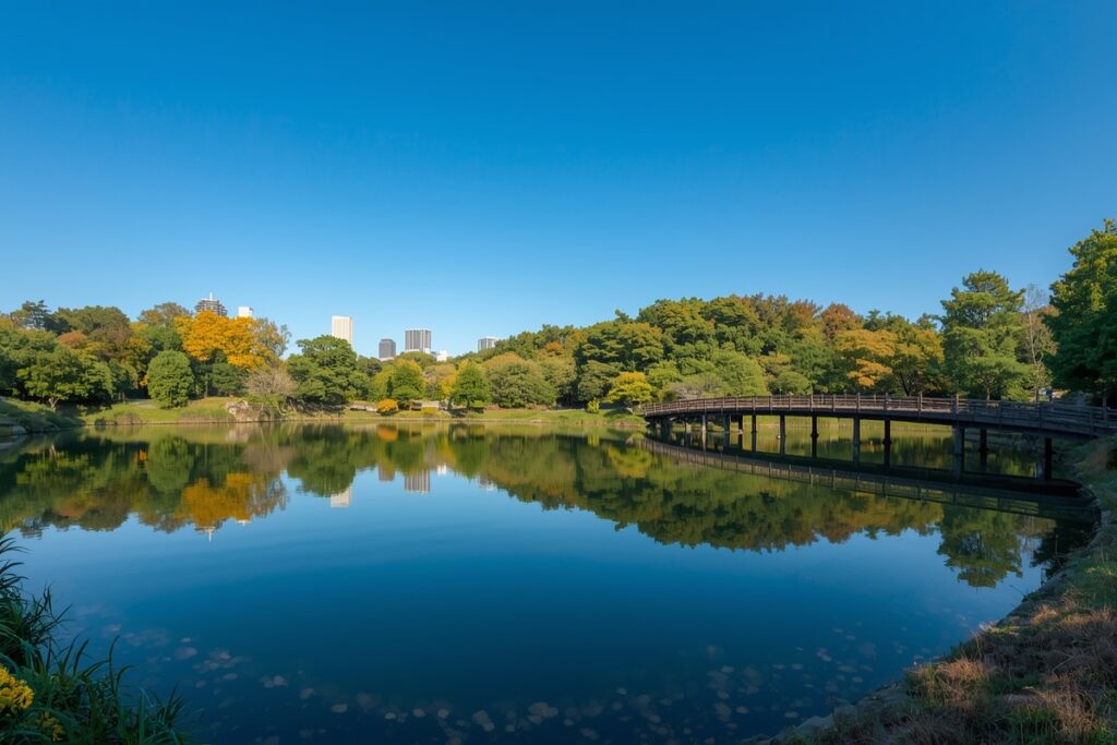 From late October to late November, maple and ginkgo trees around the park slowly turn yellow, orange, and red. The reflection of autumn colors in the water creates a classic Japanese seasonal scene, without the overwhelming crowds seen in larger cities.