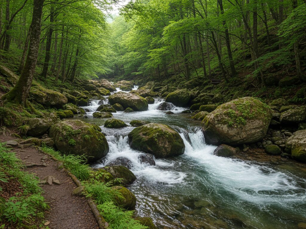 From late April to early June, the valley wakes up after a long northern winter. Snowmelt swells the stream, making the rapids and waterfalls especially powerful. The forest is a vivid, almost neon green as beech and maple leaves unfurl. Temperatures are cool and comfortable, and crowds are lighter than in autumn.