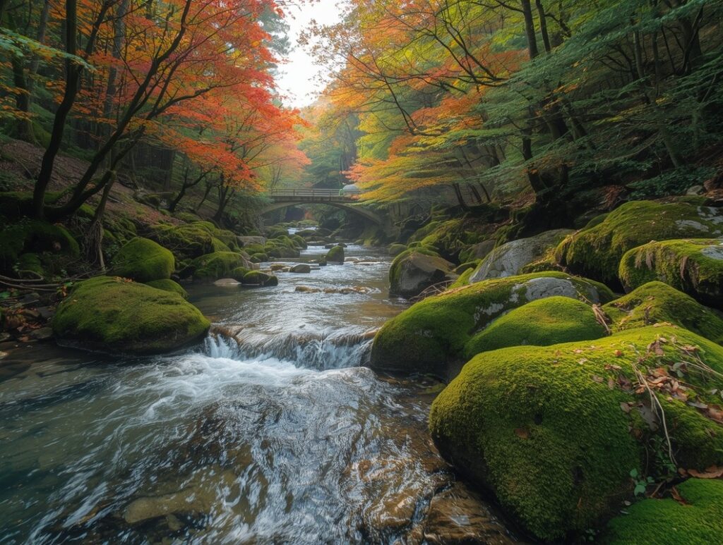 Part of Oirase’s charm lies not only in specific spots but in the overall mood of the valley. The trail passes through a mixed forest of beech, maple, oak and conifers, with a thick undergrowth of ferns and shrubs. In many sections, moss carpets fallen logs and tree roots, giving the landscape a fairy-tale feel. Birdsong and the constant murmur of the stream form a natural soundscape that can feel a world away from Japan’s busy cities.