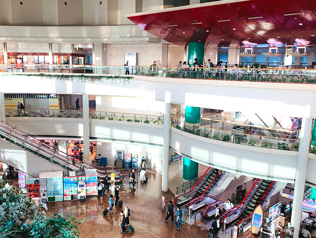 - Airport experience: Laid-back, with a holiday atmosphere and many shops selling Okinawan specialties such as beni-imo (purple sweet potato) sweets and awamori (local liquor)
