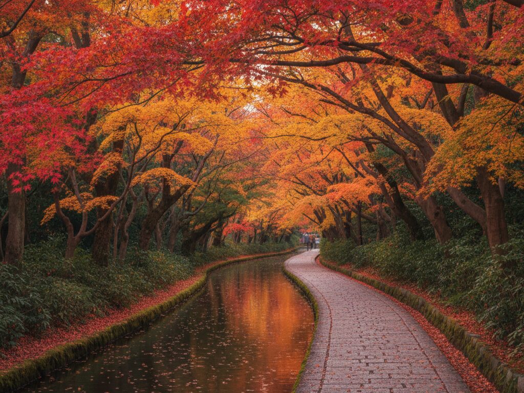 From mid-November to early December, the area around the Philosopher’s Path erupts into shades of red, orange, and gold. The nearby temples of Eikan-do and Nanzen-ji are particularly famous for their autumn foliage. While the canopy along the canal itself is less dense than in some parks, the combination of water, stone, and colored leaves is very photogenic.