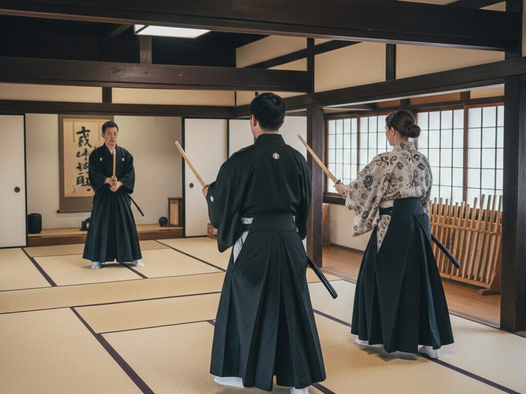 In higher-level or premium programs, you may observe a demonstration of iaido (the art of drawing and resheathing the sword) or even watch an instructor perform tameshigiri, cutting rolled straw mats with a real blade. For safety, beginners usually do not use live blades themselves.