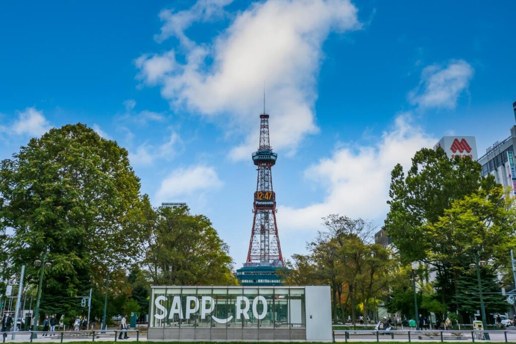 The tower sits about a 10-minute walk from JR Sapporo Station: