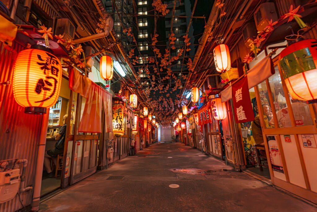 Many shops preserve an old-fashioned look: retro posters, worn wooden counters, shelves of sake bottles with handwritten labels. It is a slice of everyday Japan that survived the country’s rapid modernization. The effect feels authentic rather than staged – these are real neighborhood bars, not theme restaurants.