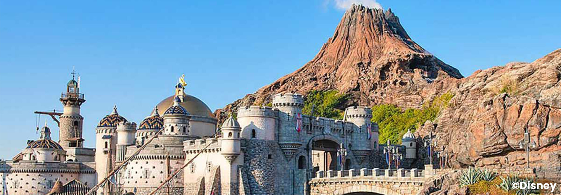 This is the dramatic heart of Tokyo DisneySea, built around the smoking Mount Prometheus volcano. Inspired by Jules Verne’s novels, it feels like a secret base for scientific exploration.